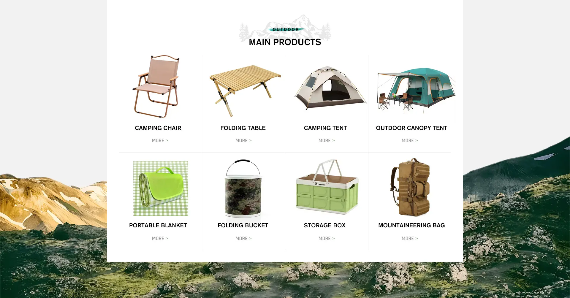 Productos principales:Bolsa de almacenamiento al aire libre, bolsa de camping, bolsa de refrigeración, tienda de campaña, silla plegable